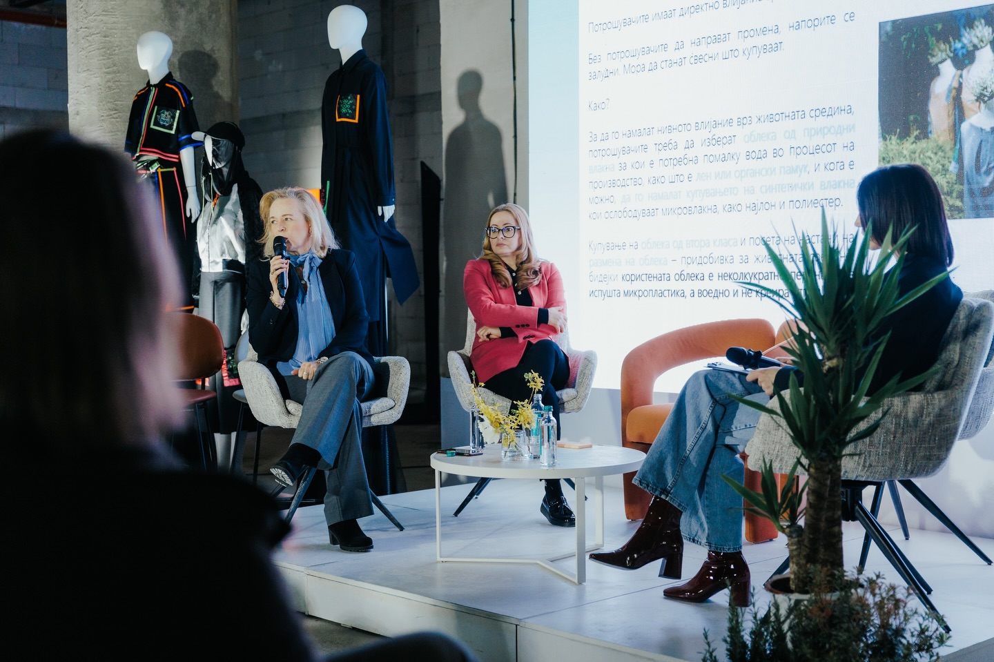 Во фокусот на презентацијата беа предизвиците поврзани со влијанието на текстилниот сектор врз водните ресурси, со посебен акцент на микропластиката како еден од помалку видливите, но сè поактуелни проблеми. Беше истакнато дека овој проблем не се однесува само на производството, туку и на фазата на користење и одржување на облеката, што ја нагласува и улогата на потрошувачите како важен дел од поширокиот систем.