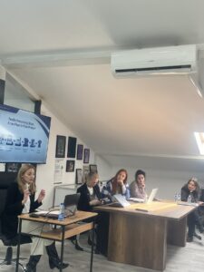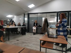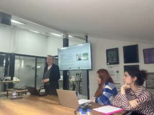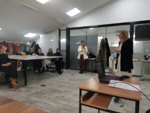 Сабина Хаџиахметовиќ од Хидроинженерскиот институт Сараево (HEIS) одржа презентација за влијанието на текстилната индустрија врз водните ресурси. Таа објасни како различните фази од производството, особено мократа обработка, создаваат загадена отпадна вода што содржи бои, хемикалии и синтетички честички, како и како микровлакната и микропластиката се задржуваат или преминуваат низ пречистителните системи и завршуваат во природата.
