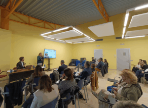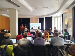 Состанокот започна со презентација на Давид Аљо , раководител за одржливост при Texfor, кој го претстави правниот контекст на текстилниот сектор и сподели неколку успешни приказни од организации и проекти фокусирани на циркуларност. Потоа, Лаура Роблес, раководителка на проекти во Фондацијата Ciedes, ја презентираше работата на Форумот на Глобалната Метропола Малага – платформа составена од советници од 38 општини. Овој форум е посветен на носење одлуки за клучни прашања поврзани со стратешкото планирање на метрополската област на Малага, како што е селективното собирање на текстилен отпад.